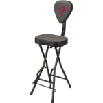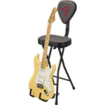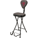 Ideal for any guitarist or bassist, this combination seat and guitar stand makes it easy to have a productive practice session or survive a long performance. Comfortably padded for long playing sessions, the seat and Fender 351 pick-shaped backrest with embroidered "F" logo are covered in woven gray tweed fabric. The flip-up/down instrument cradle - designed to fit most guitars and basses - displays your instrument securely while the integrated crossbar footrest accommodates almost any leg position. Designed for easy transport, the seat legs fold and the backrest is removable to make it even more compact when headed to a gig.